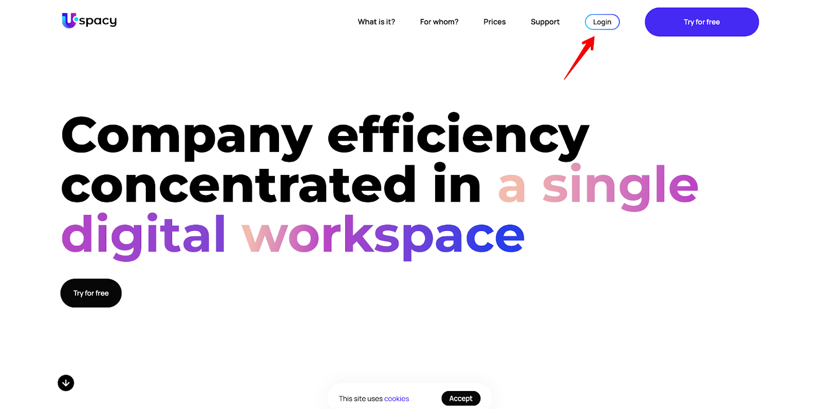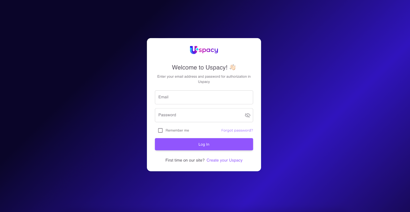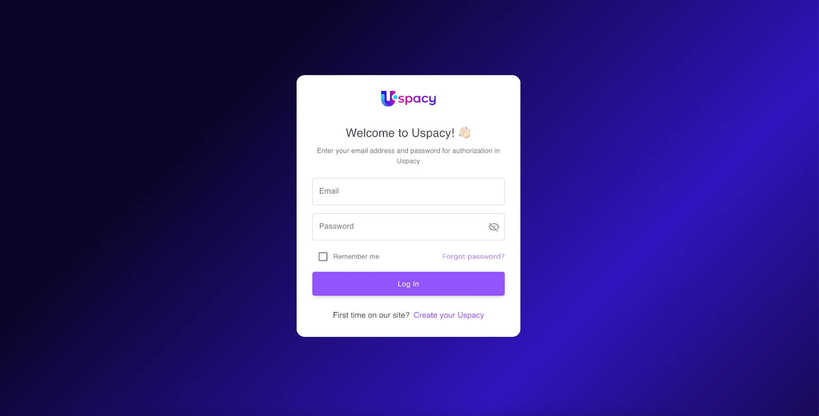 You can also go to the authorization page from the main Uspacy website COM|EU|COM.BR. To do this, you need to click on the Login button.