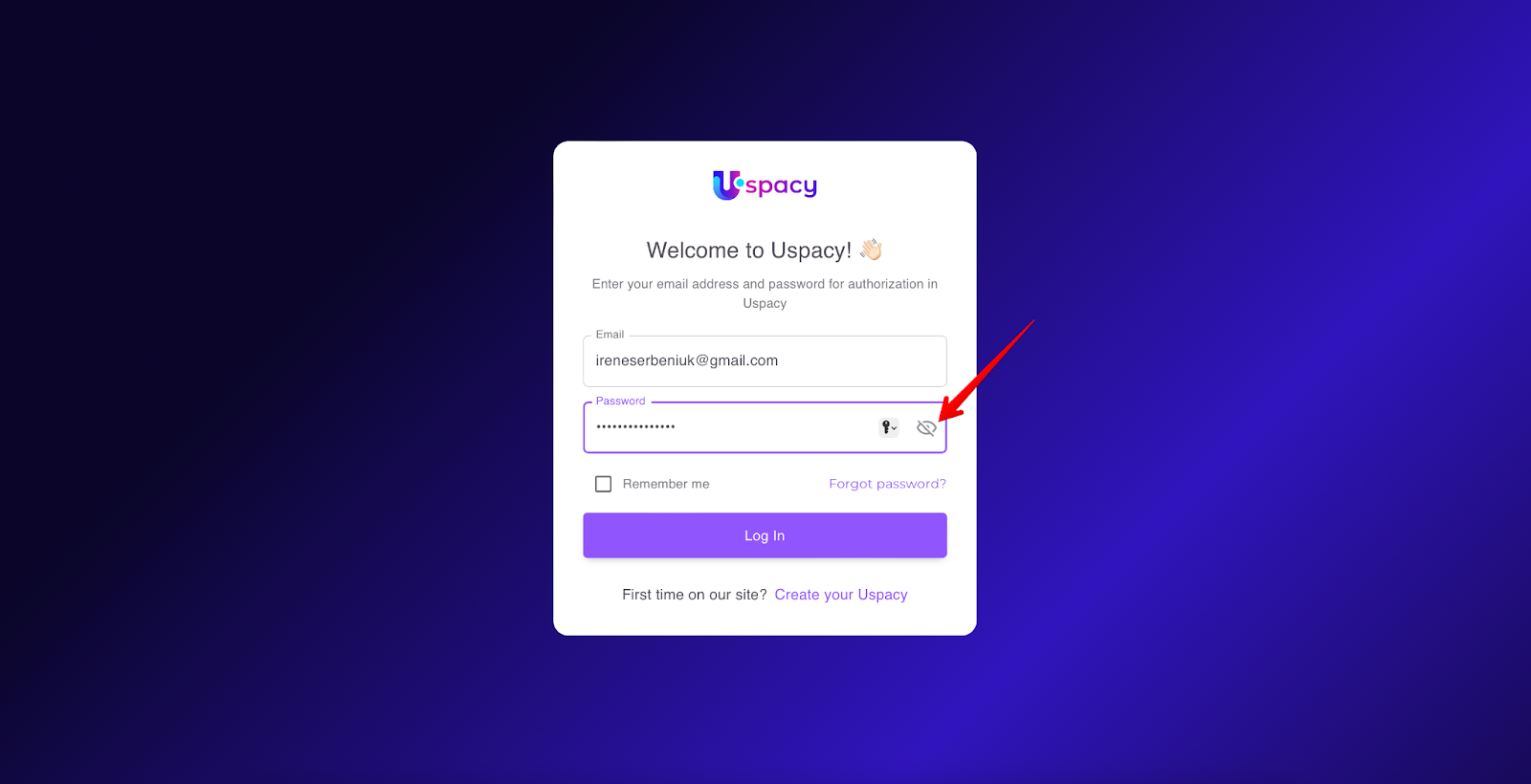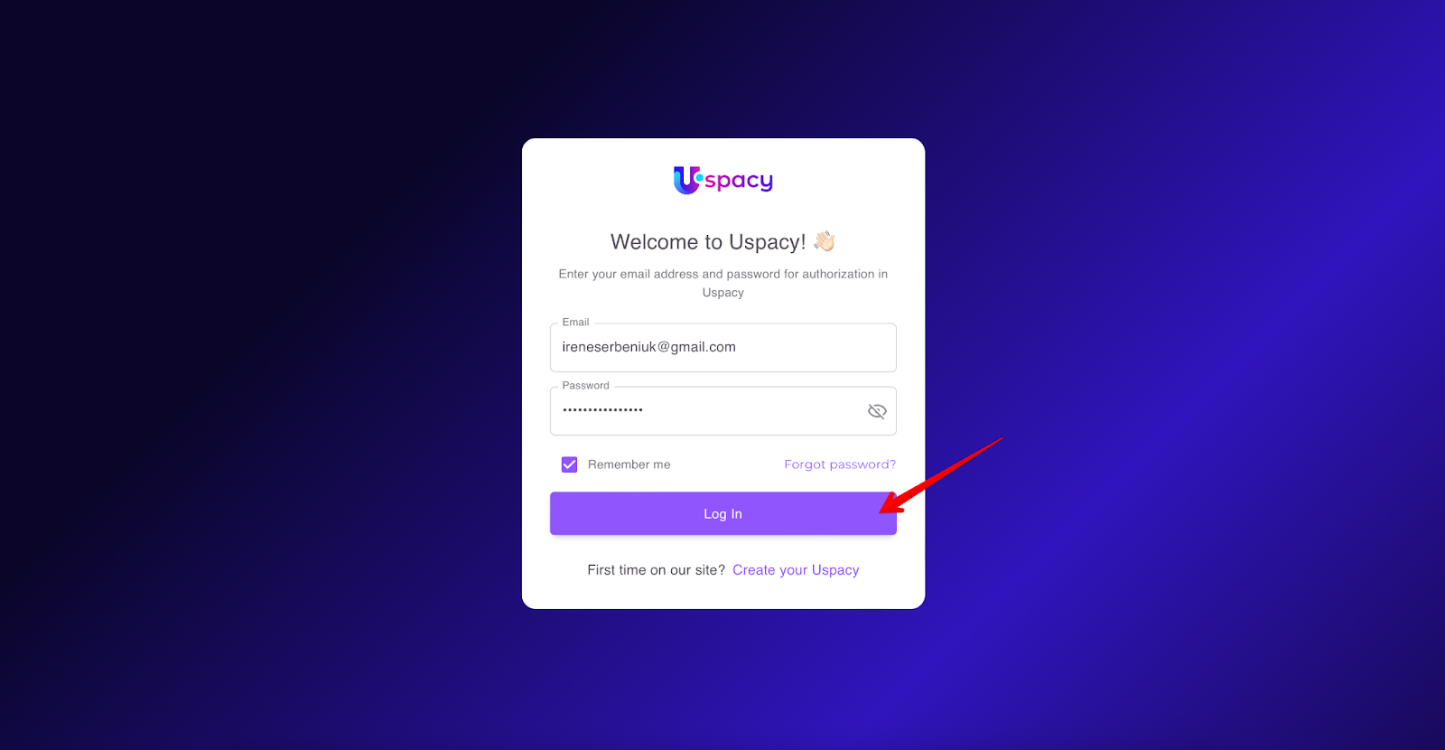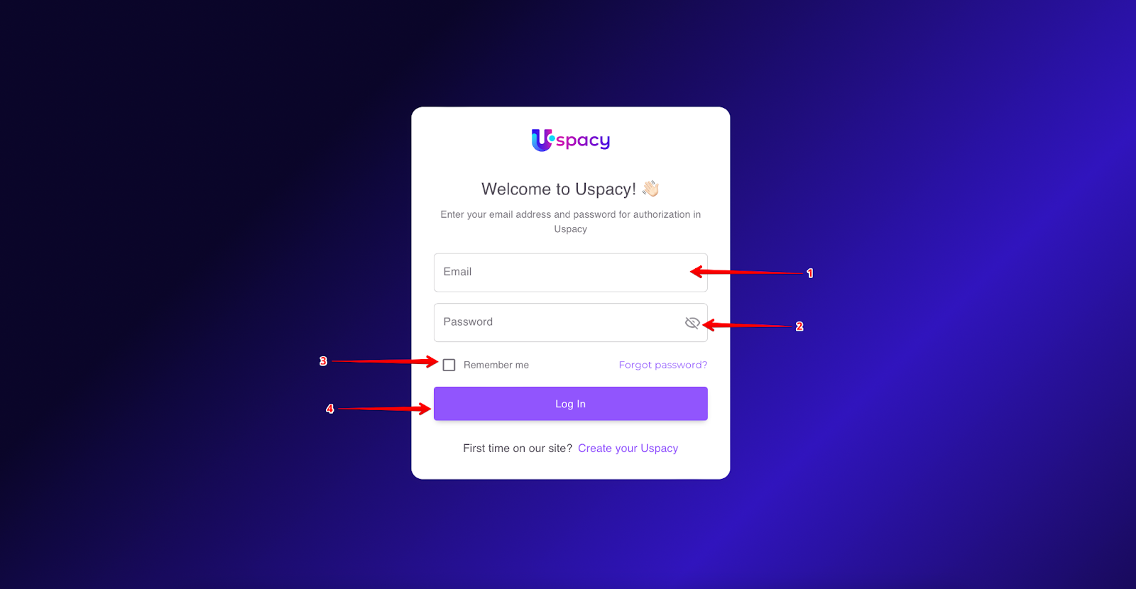 You can also go to the authorization page from the main Uspacy website COM|EU|COM.BR. To do this, you need to click on the Login button.