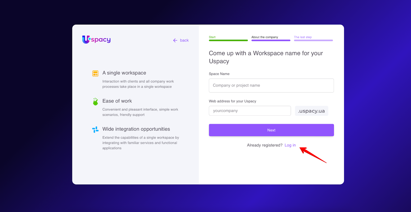 If you already have your own Space, all you need to do is log in to it. Go to a special page, fill out the form and log in.