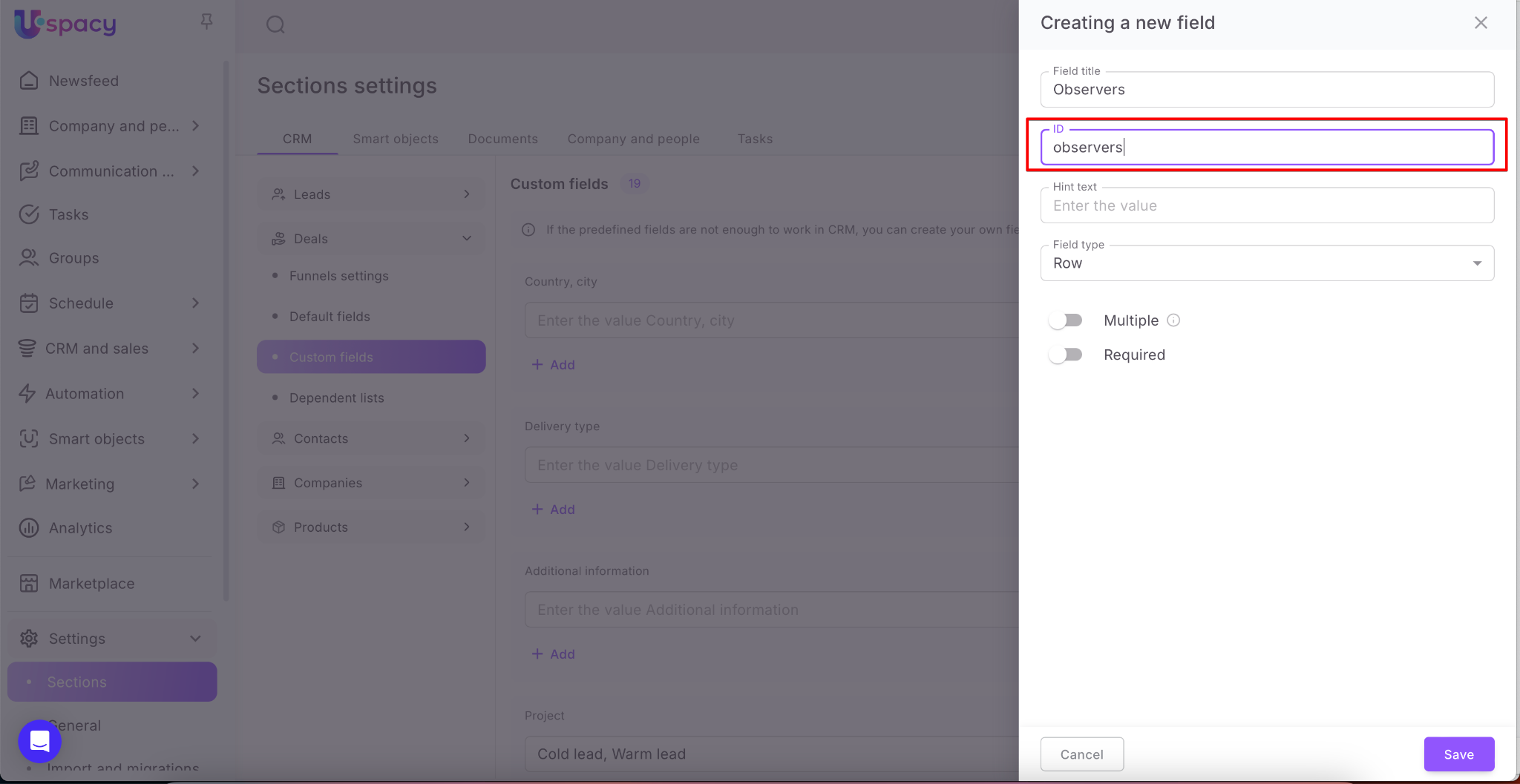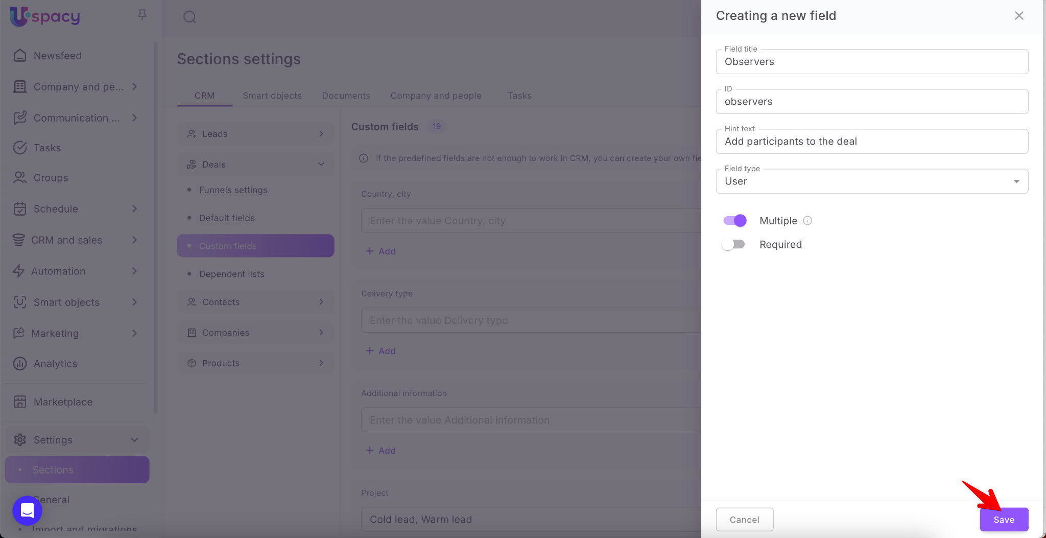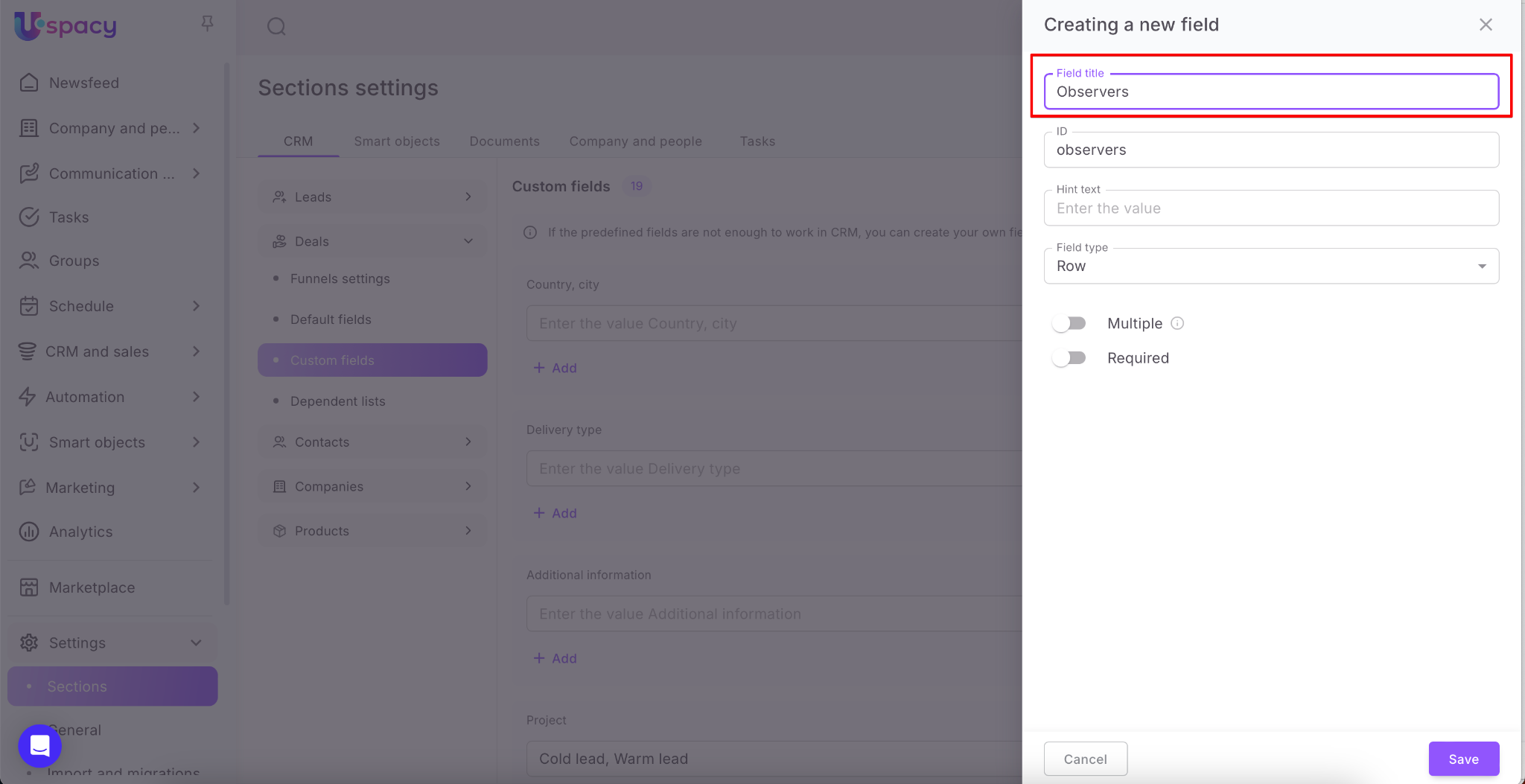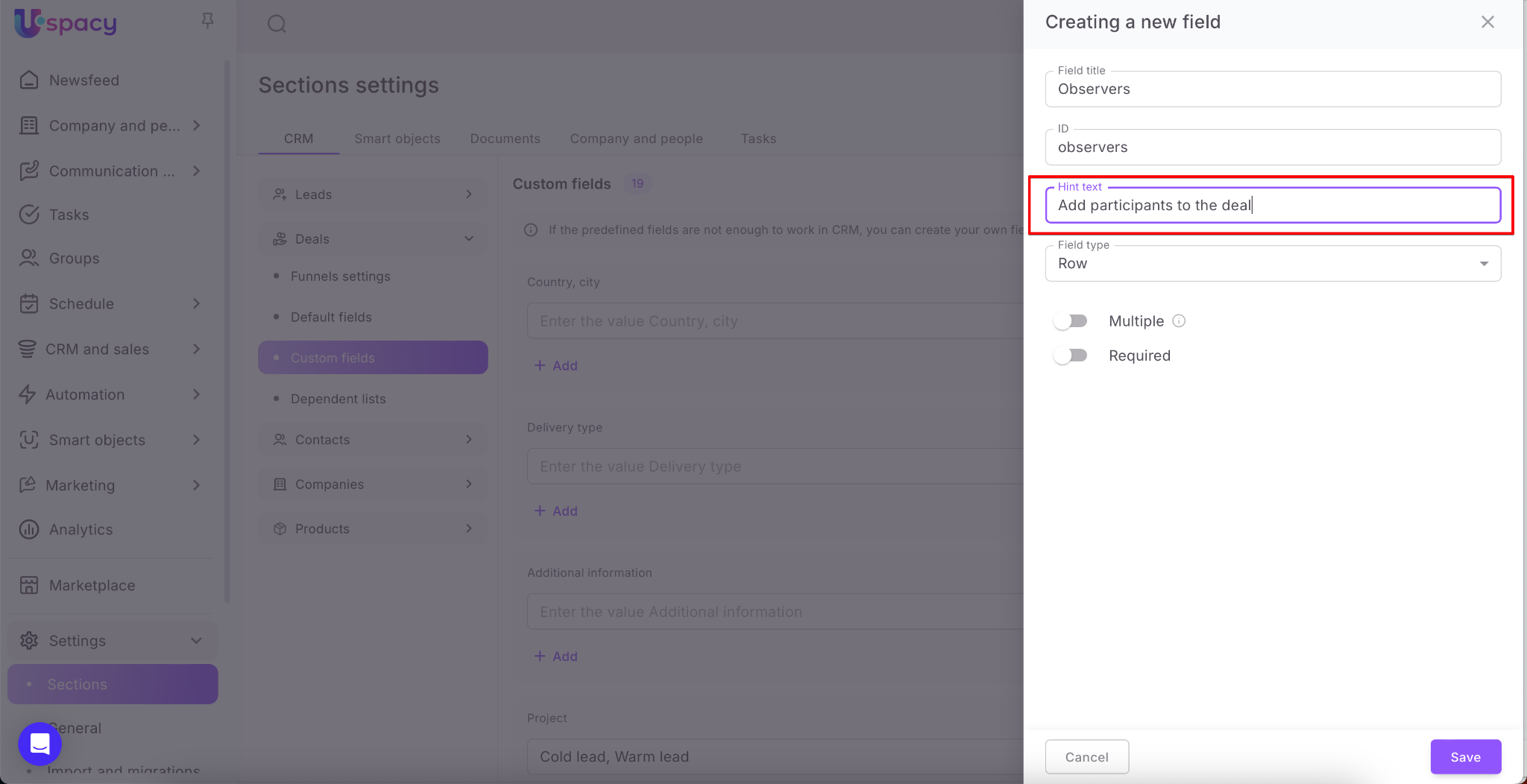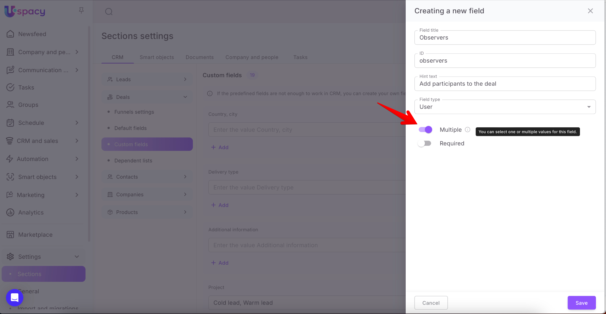 And finally, mark whether the field should be multiple (you can select several values for it) or not.
