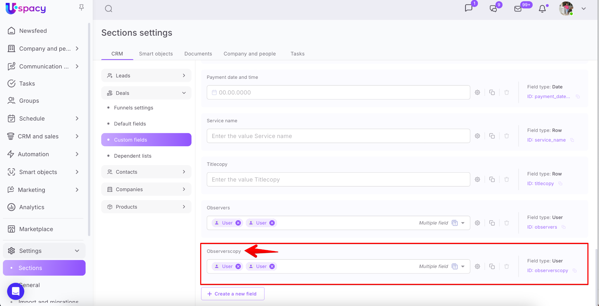 The created field will be displayed in the list of custom fields.