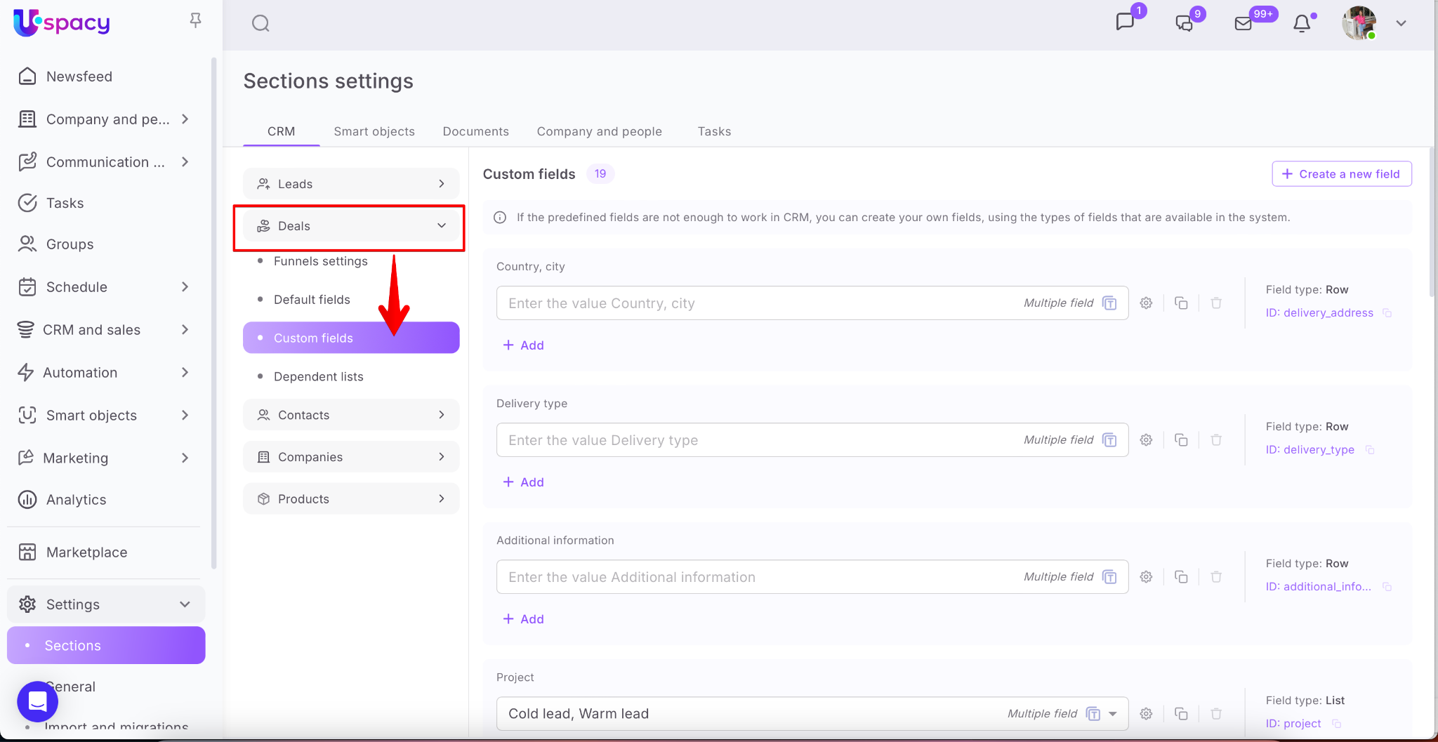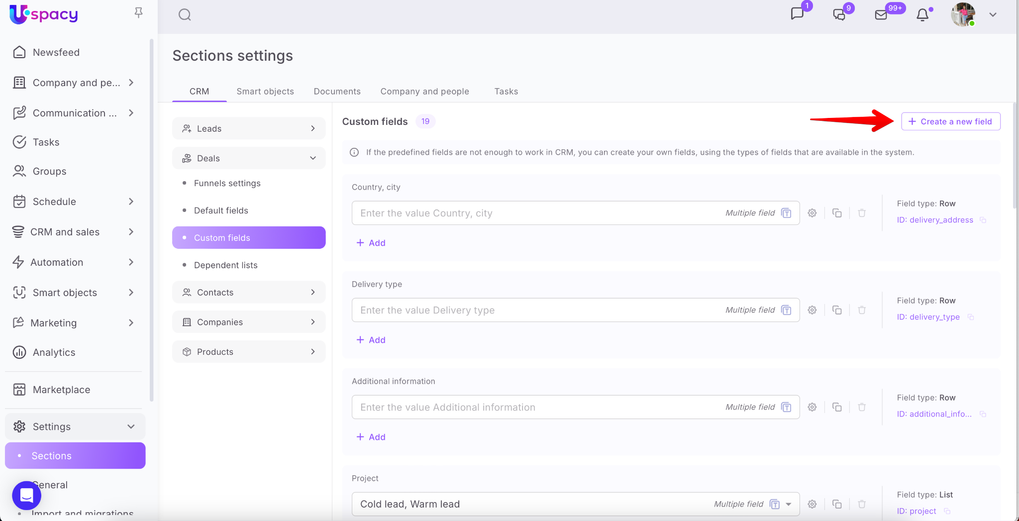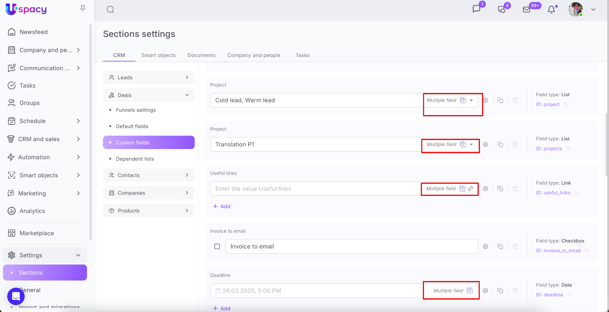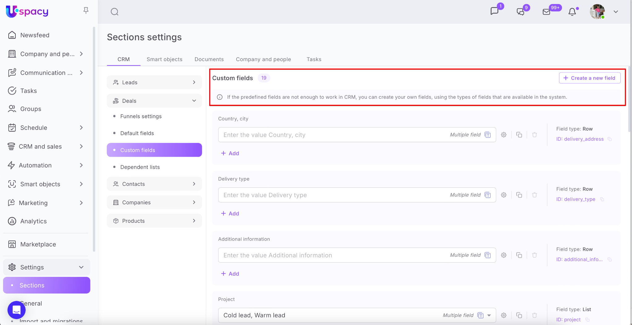 💡Custom fields are available for leads, deals, contacts, companies and products.