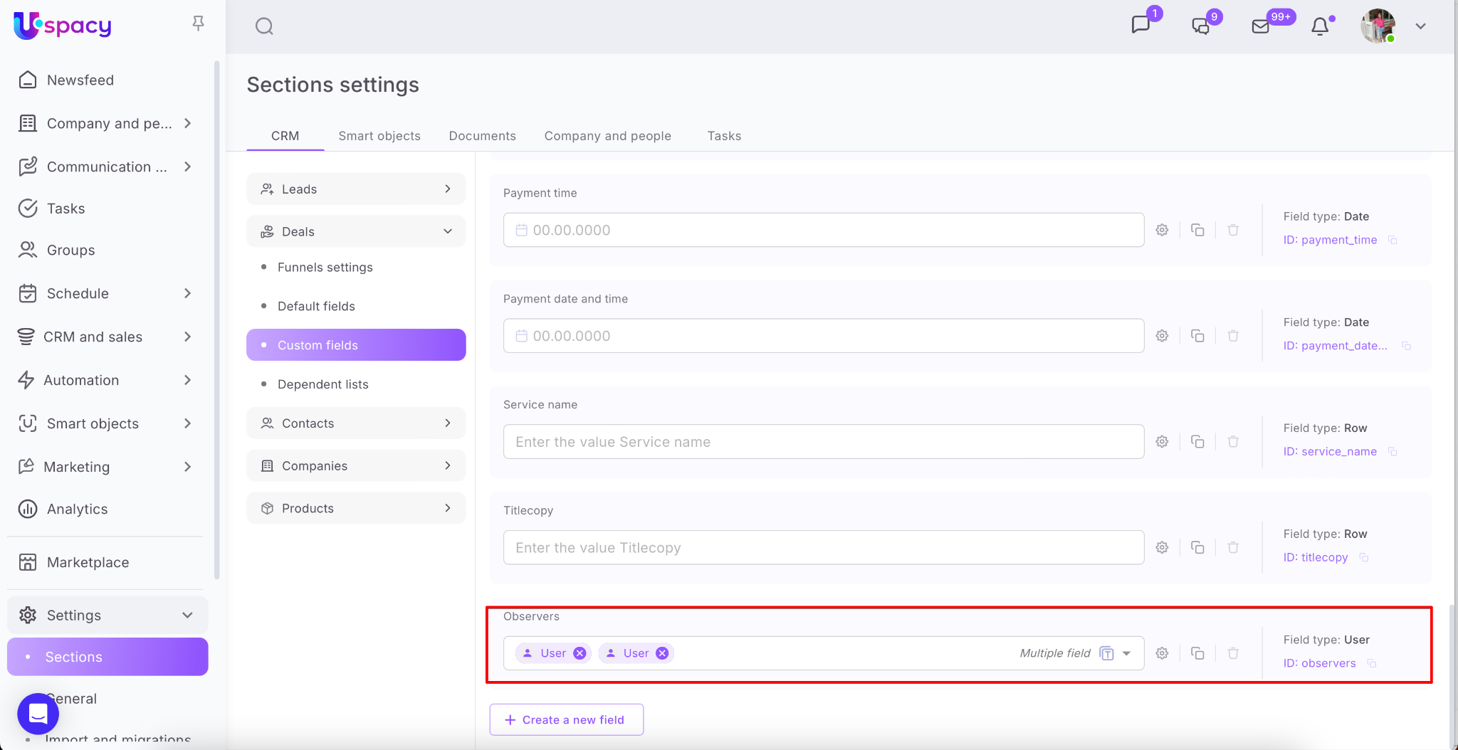 ❗️Only the administrator and Space owner have access to creating and configuring custom fields.