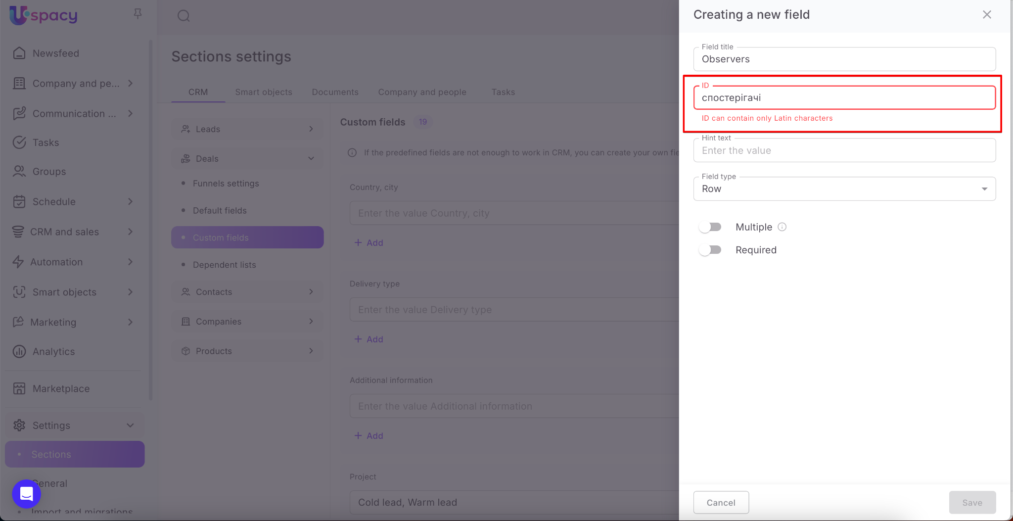 ❗️Pay attention! Once created, the field type CANNOT be changed