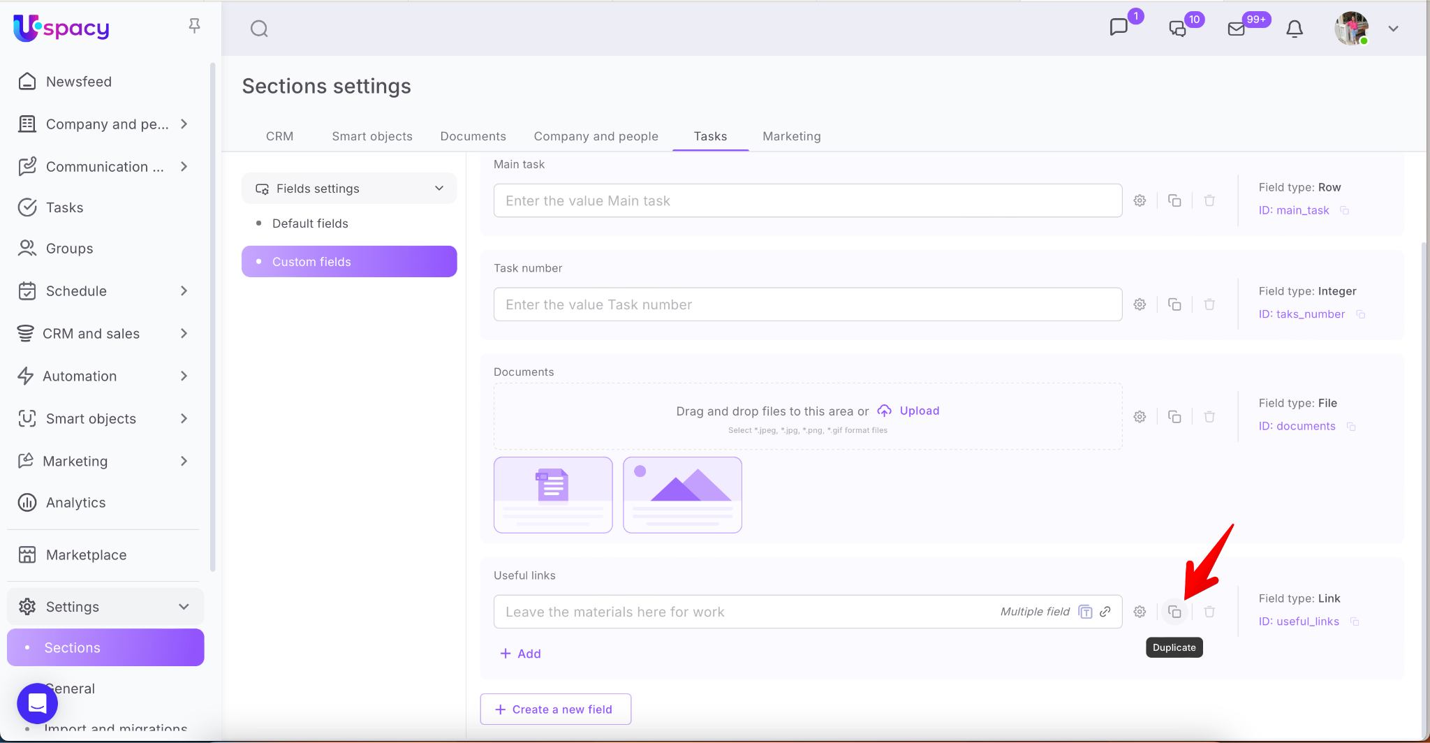 You can also duplicate a field โ the copy will appear with a "copy" tag.