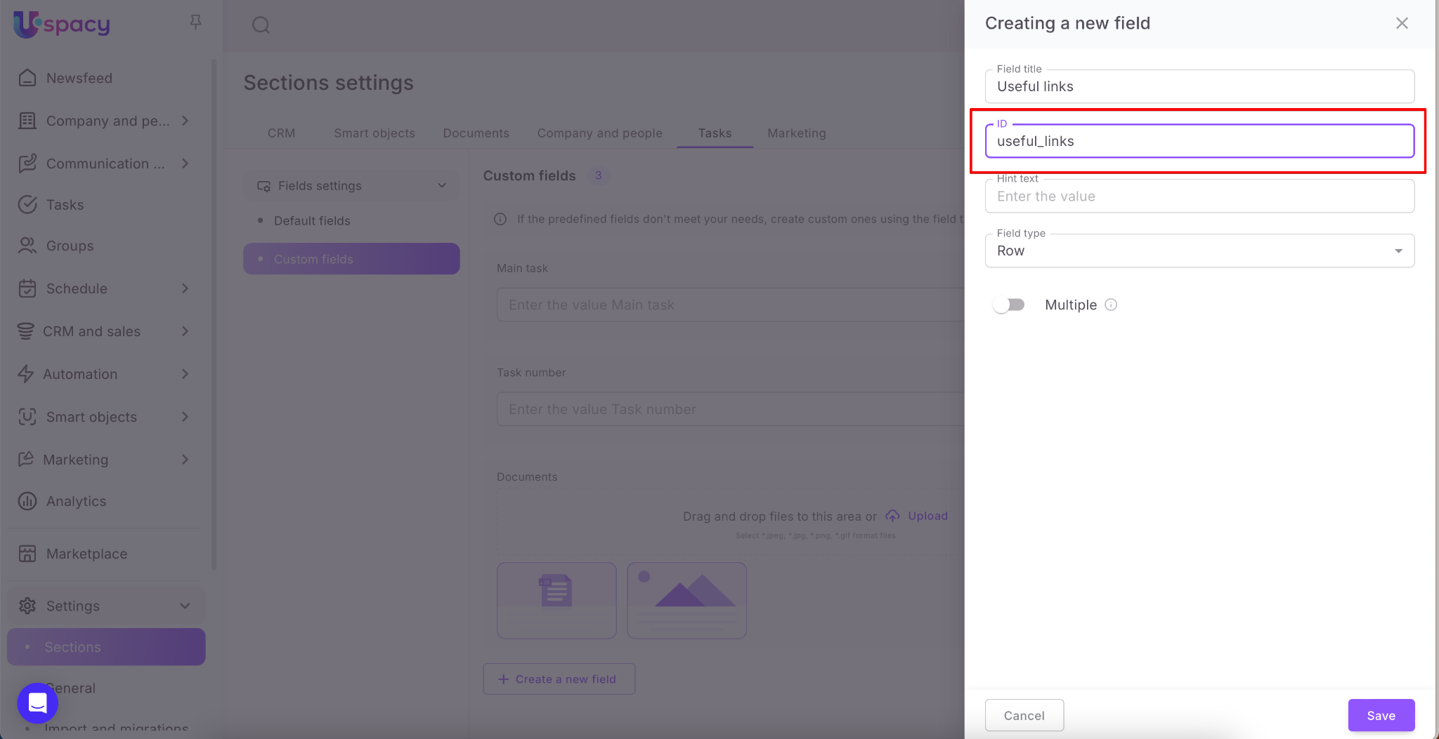 Next, you may edit the field ID. The system will auto-generate one using Latin characters, but you can enter your own.