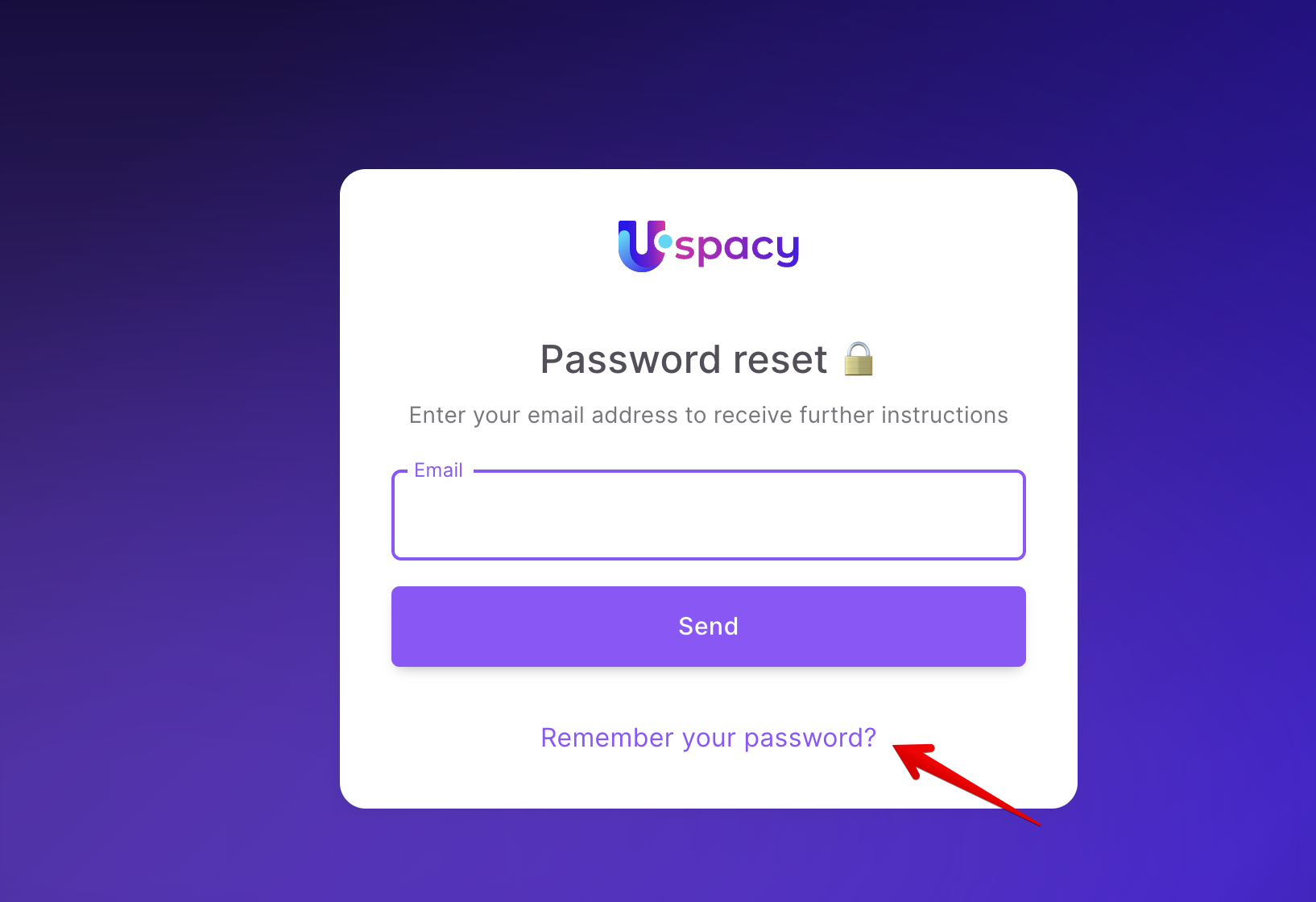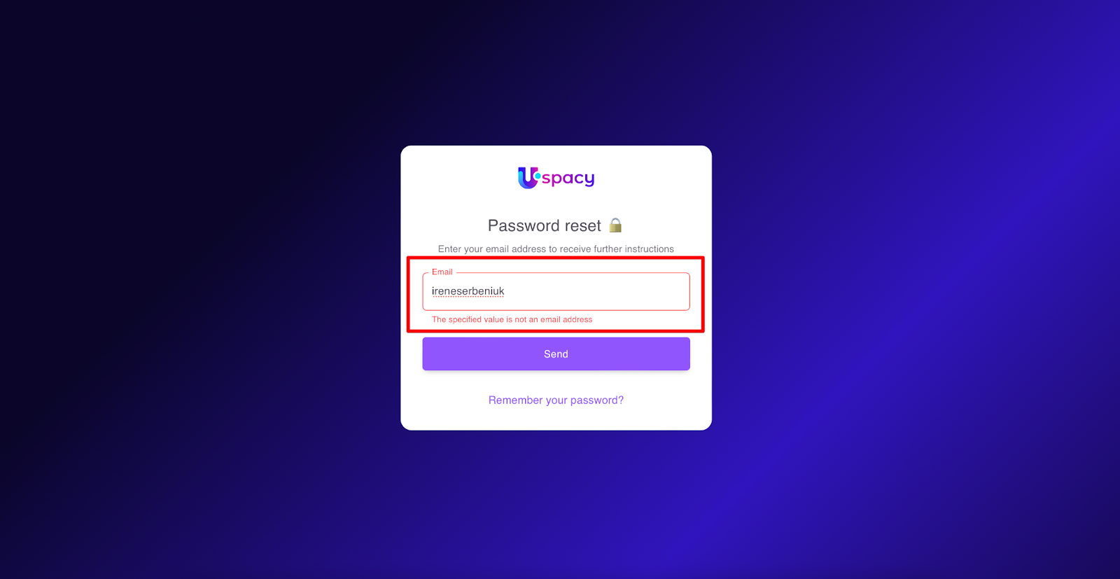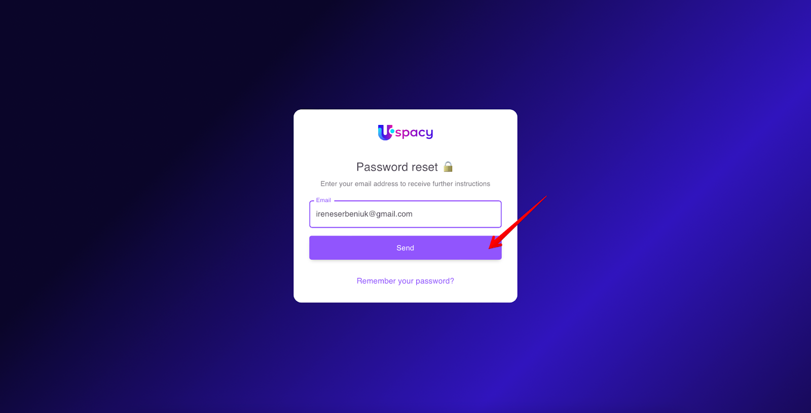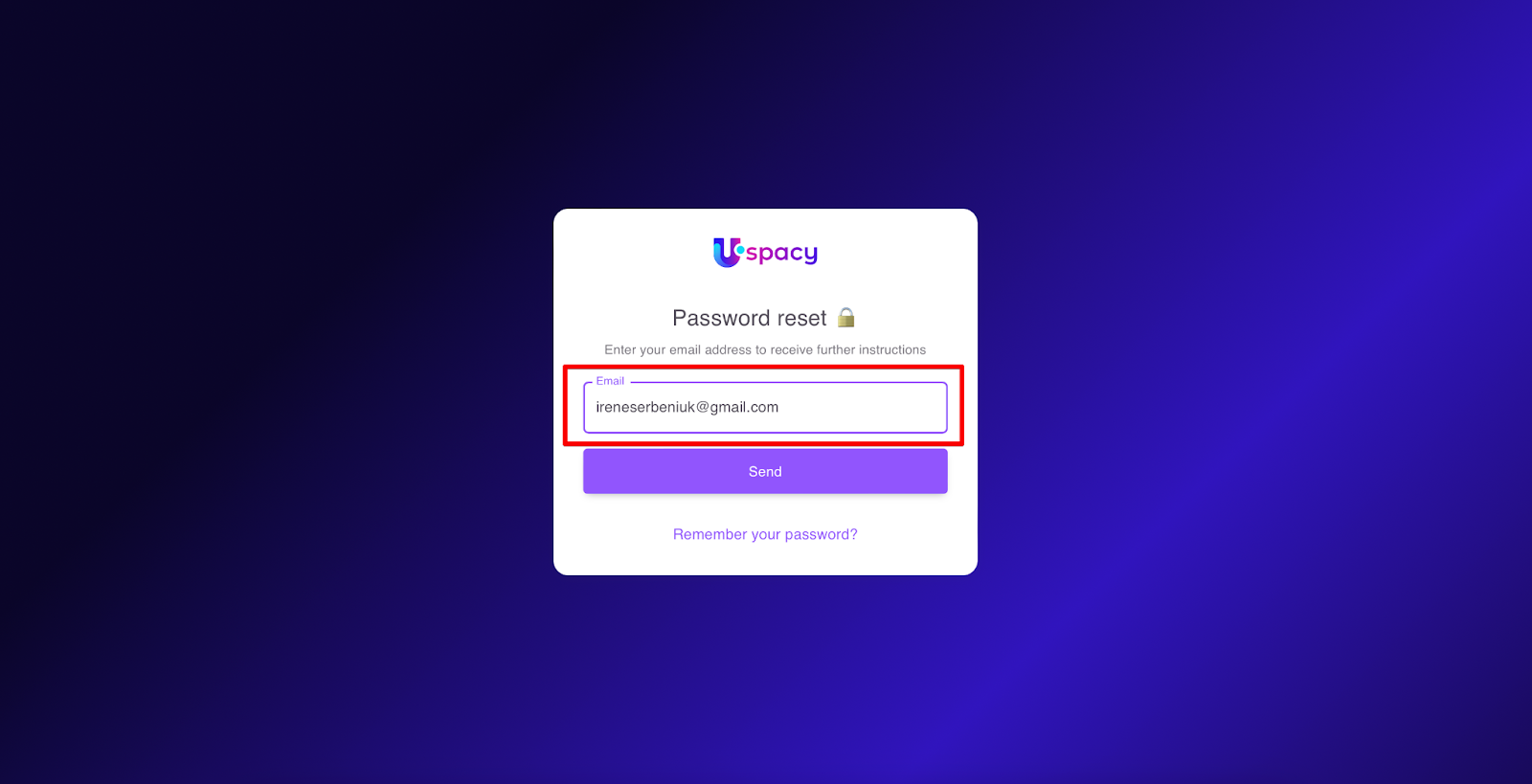 A password recovery request form will open. It will be necessary to enter the email, which is the login used for this Space.