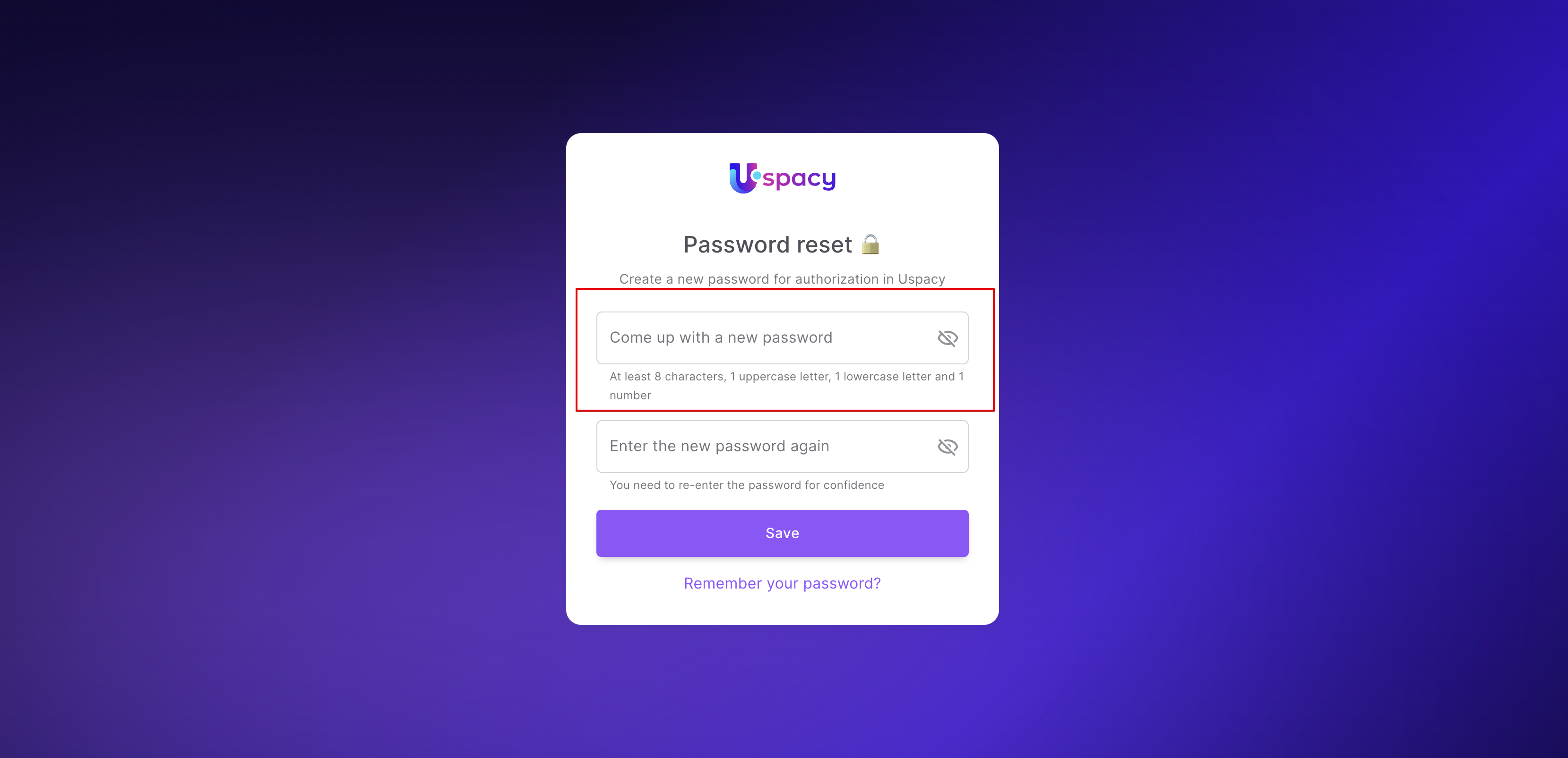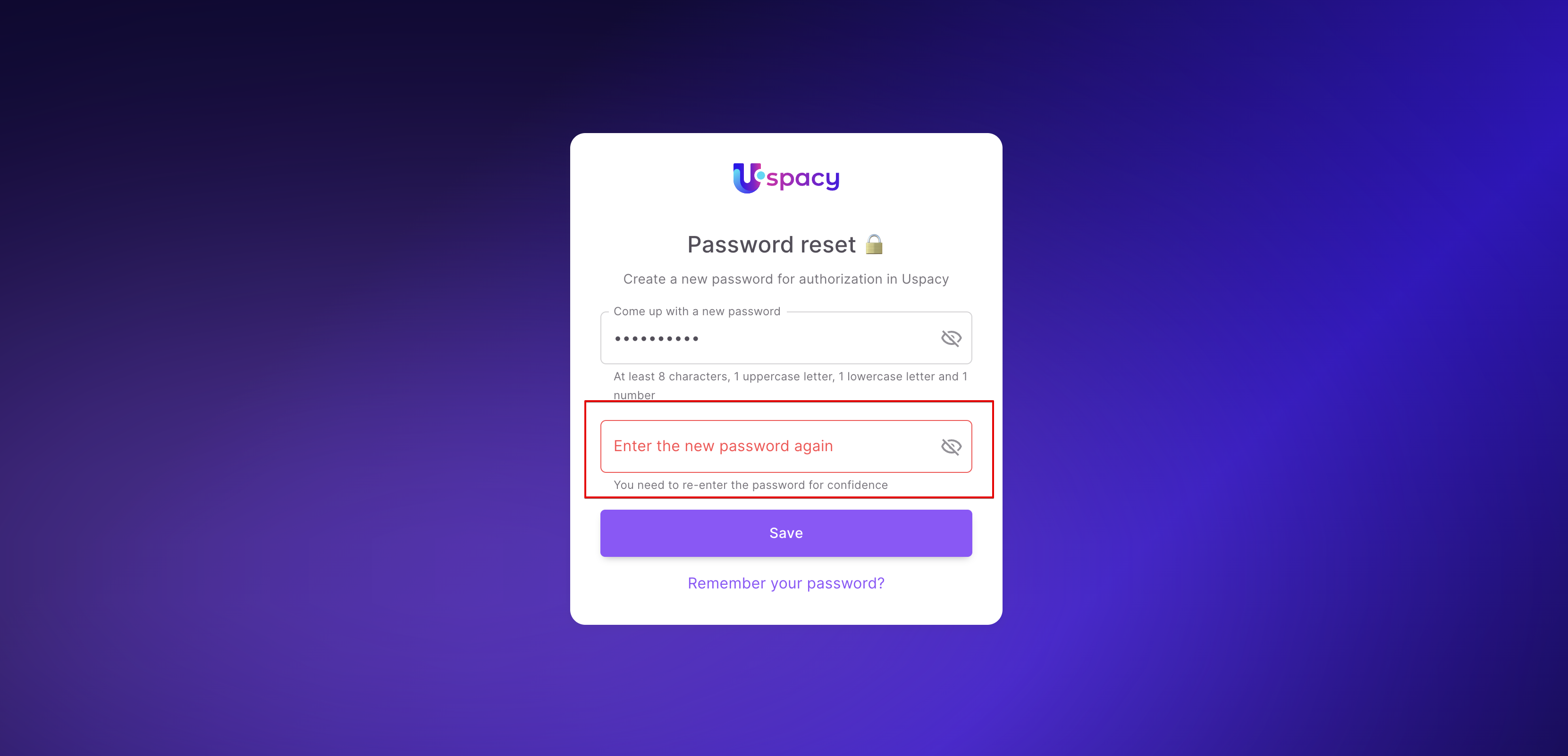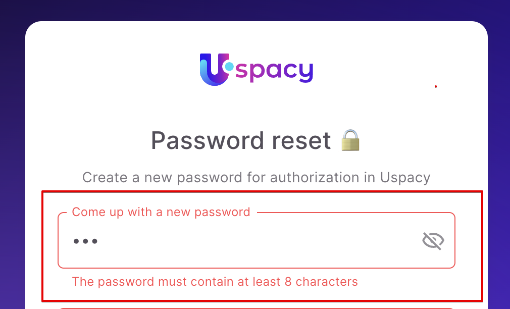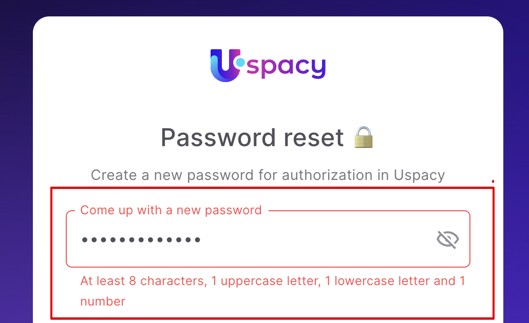 ❗️If the password does not correspond to the required format, the system will notify you and highlight the field in red.