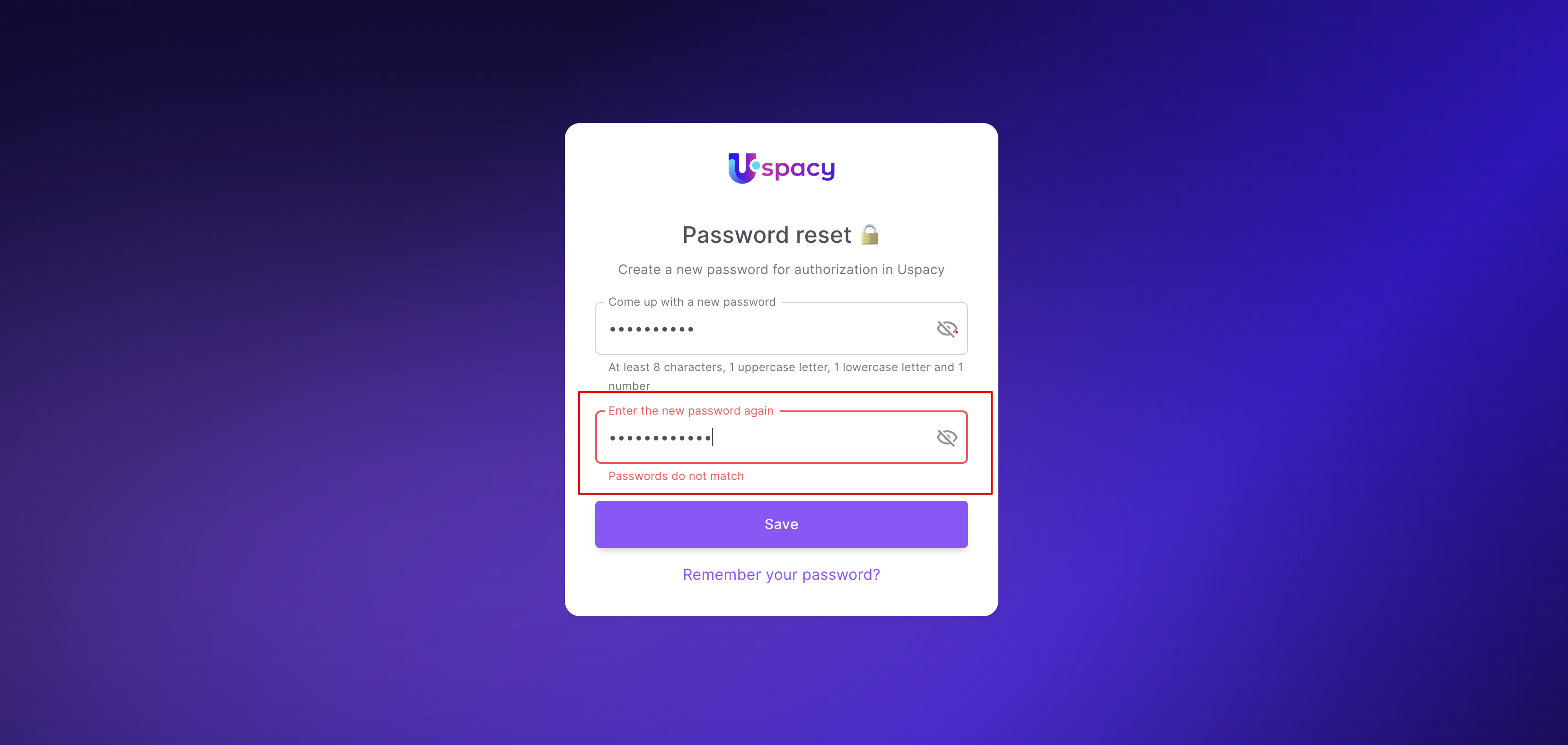 ❗️ If the passwords do not match, the system will notify you.