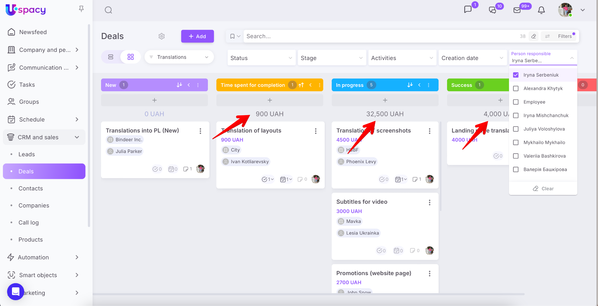 Such a visual display helps to quickly navigate and plan your work with leads and deals.