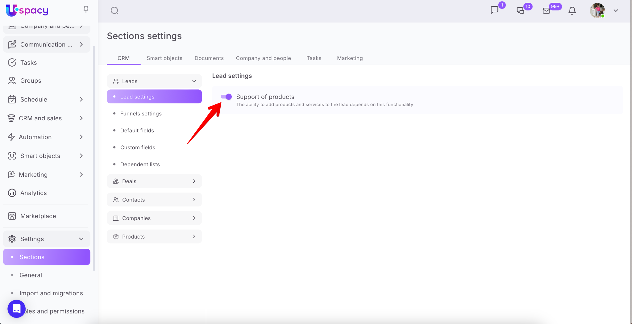💡 Of course, this feature is also available for leads and Smart Objects. However, to ensure it works correctly, support of products must be enabled in their settings.
