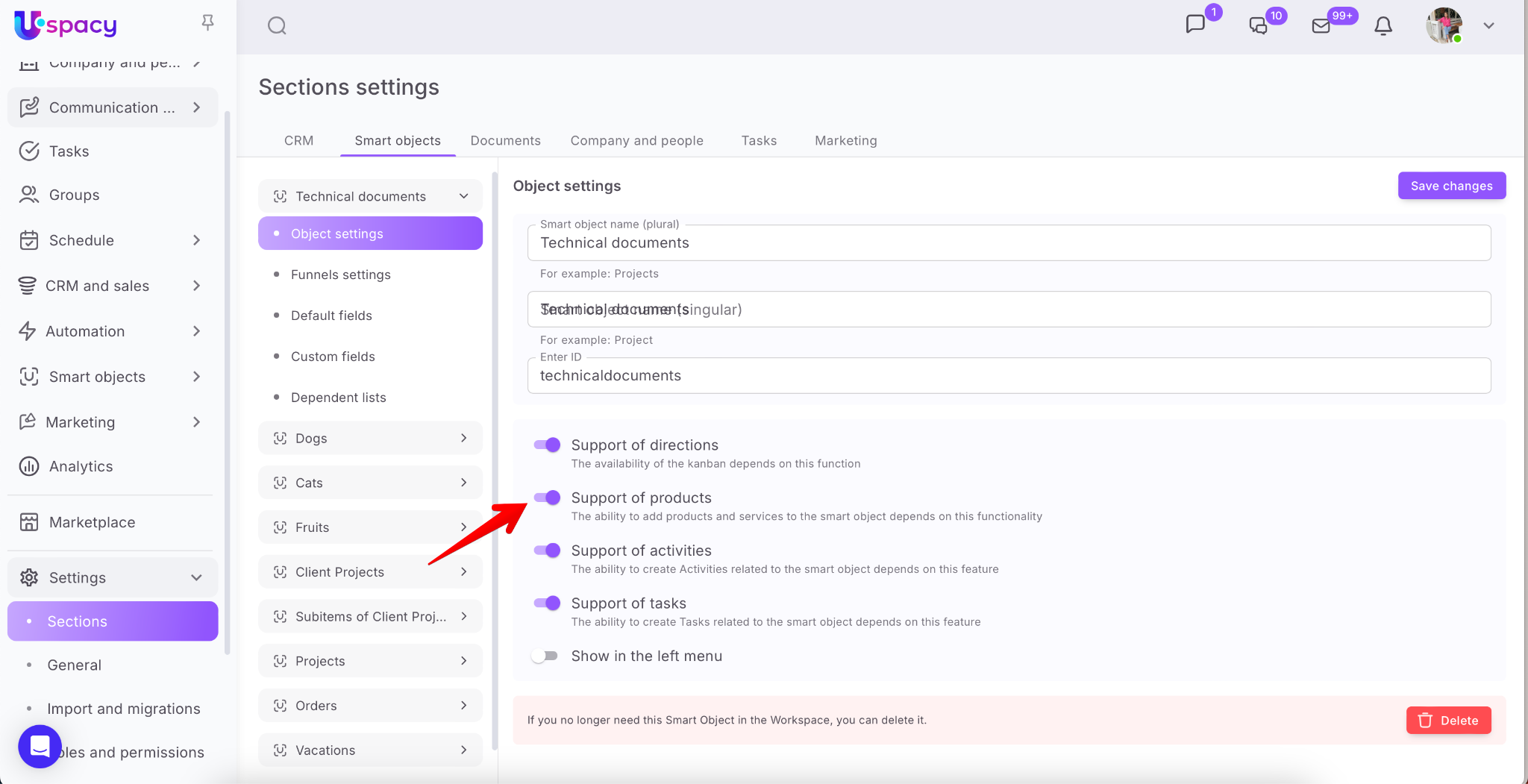 🔍 You can learn more about Smart Objects, their features, and how to work with them in Uspacy in this section.