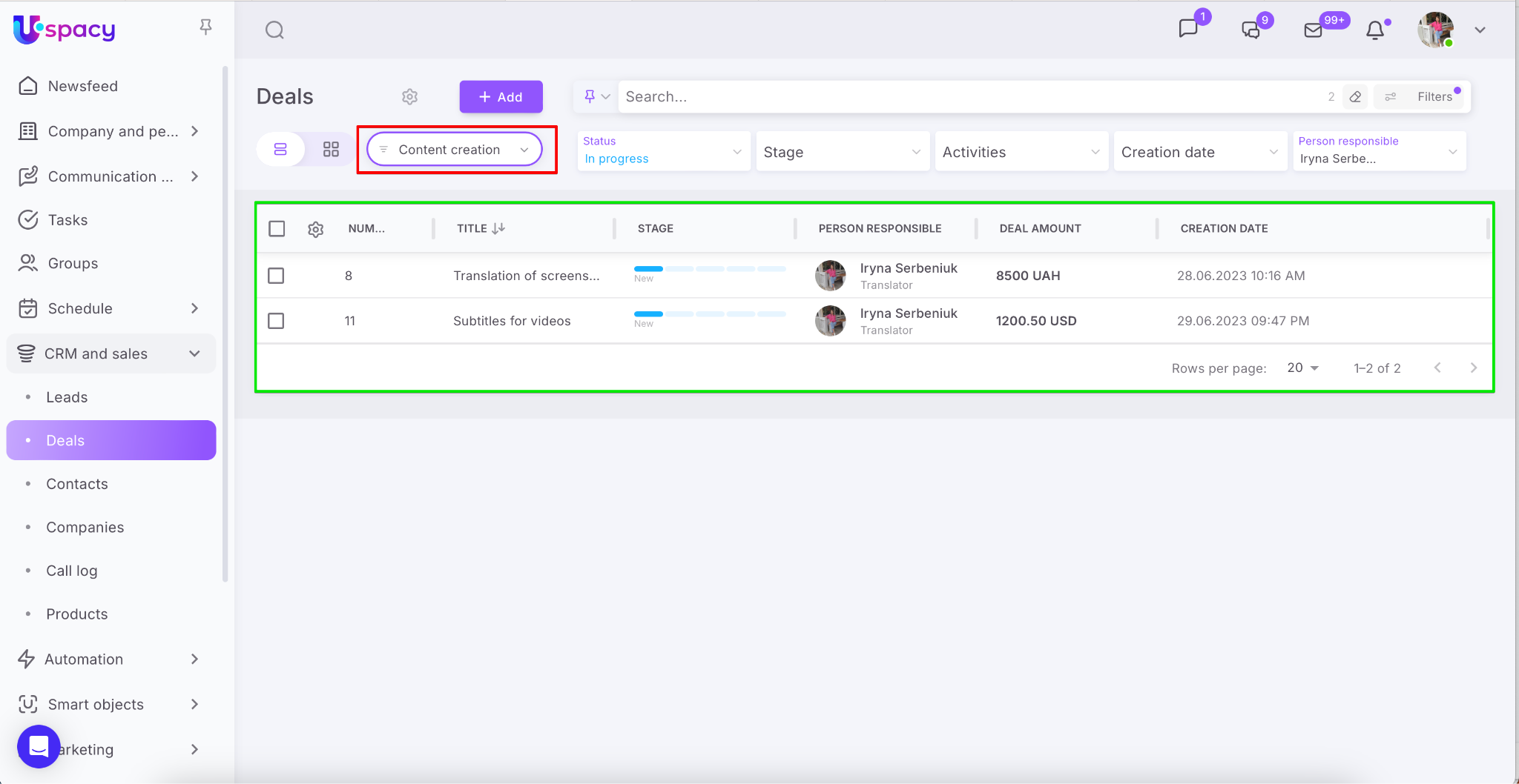 👉 This is convenient for working with translations, as it’s important to see not just the person responsible and deal amount, but also the detailed client comments.
