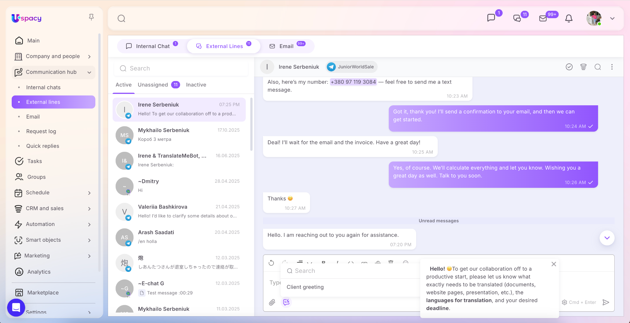 π Read more about migrating to Uspacy from other services in the Knowledge base.