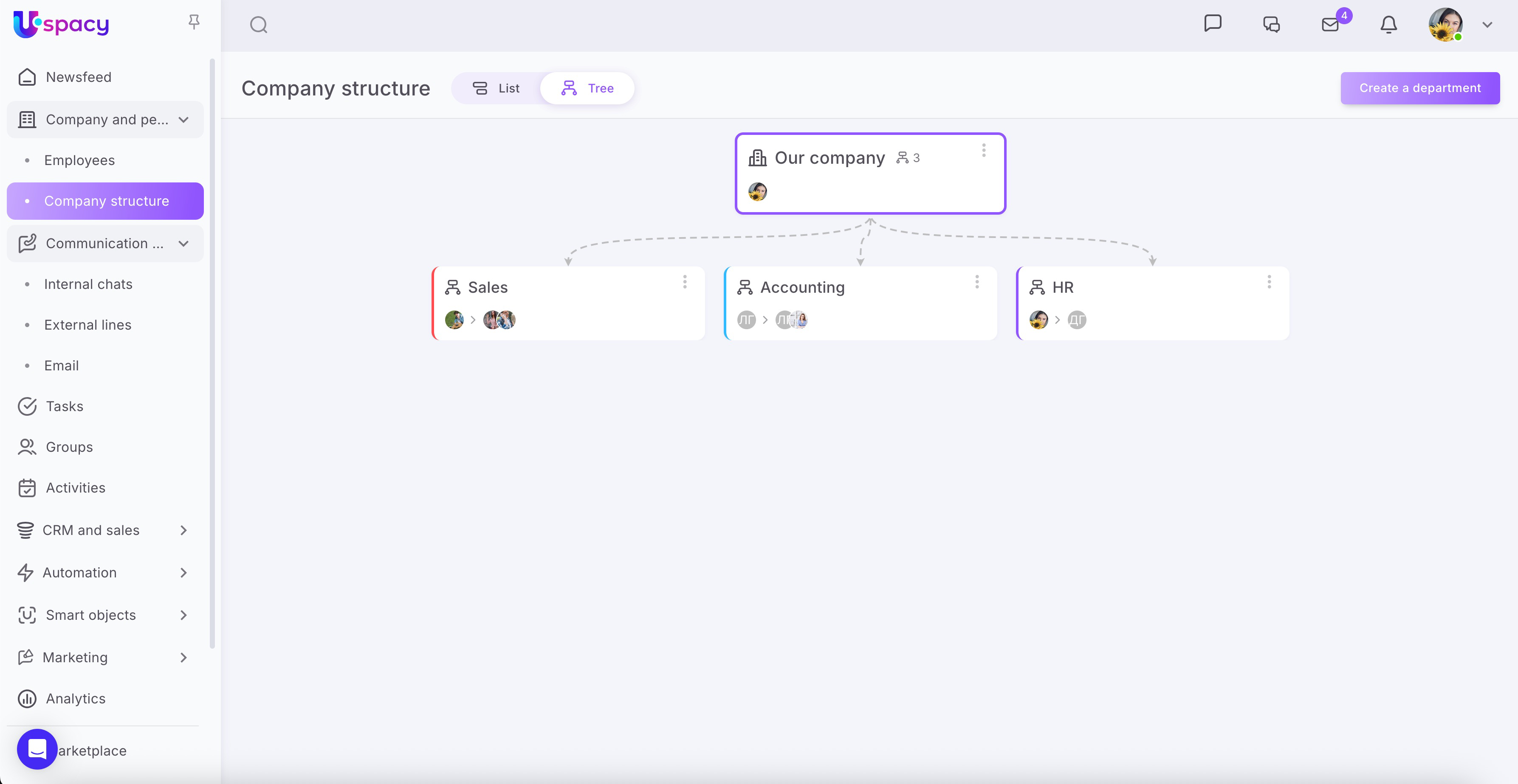 🔍 You can read more about the appearance, structure logic, and functioning of the company structure in Uspacy in this article.