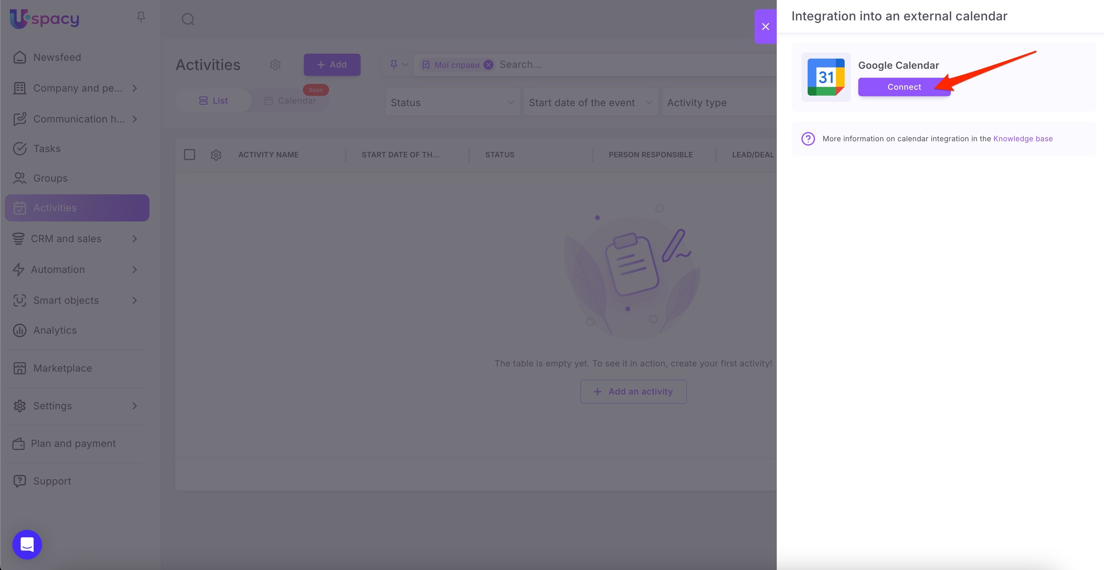 ๐ฃ The hottest one is the integration with Google Calendar! Now you can connect your calendar to Activities and receive events from it, or see your Uspacy events in your Google calendar. This update is gradually becoming available to our users, so you can expect it in the coming days.
